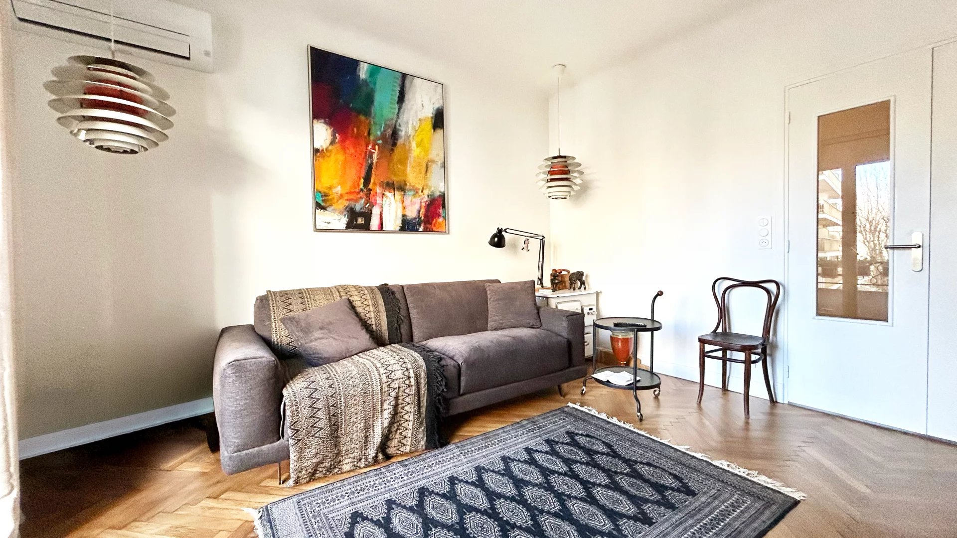 Il dispose par ailleurs de la climatisation et d’une porte-fenêtre en triple vitrage, garantissant un confort thermique et acoustique. Une cave complète ce bien.