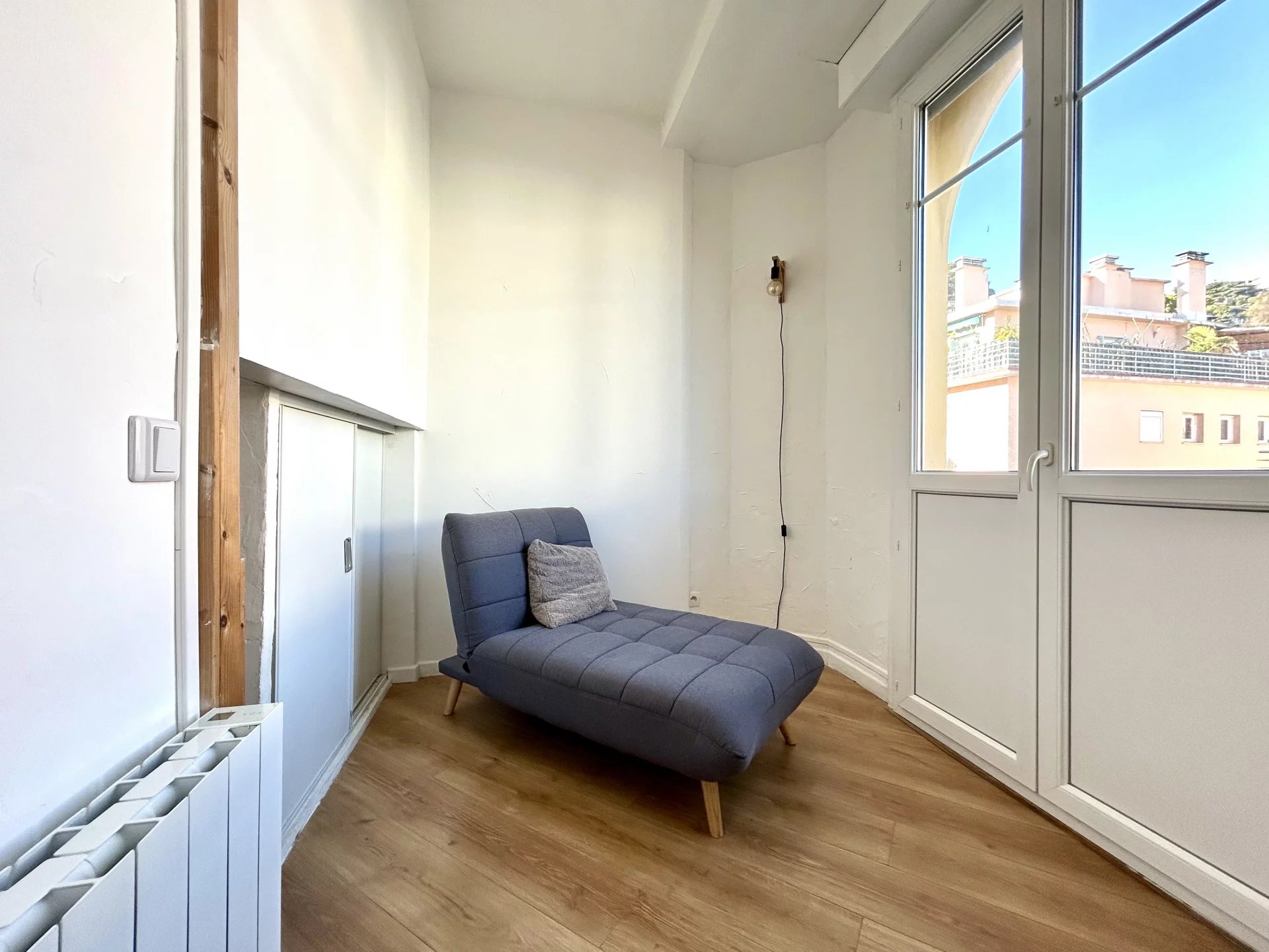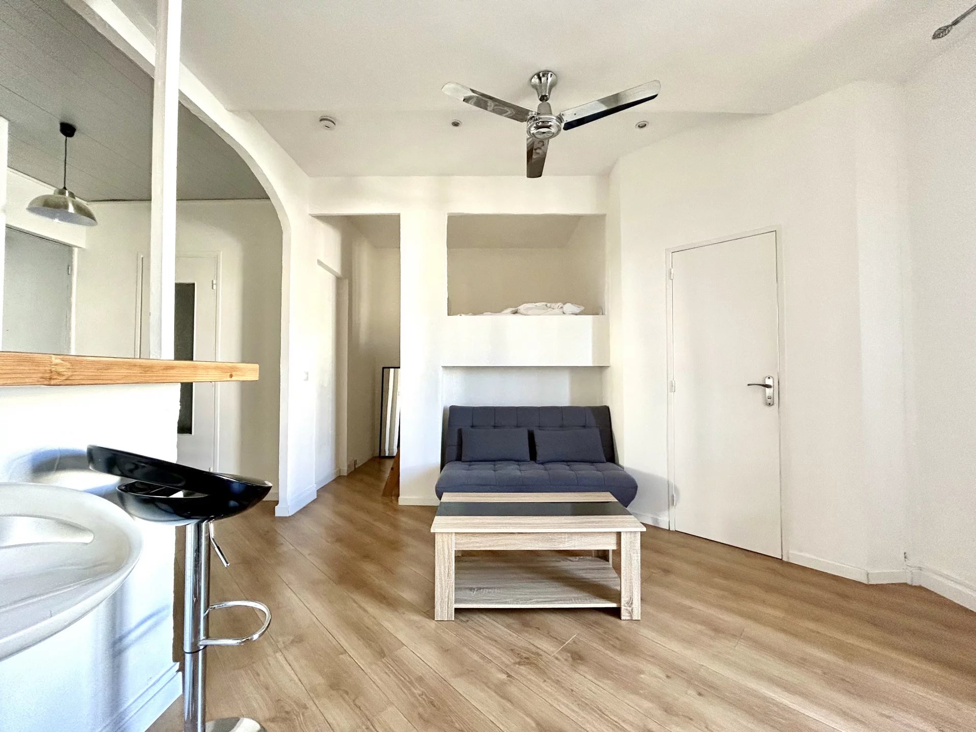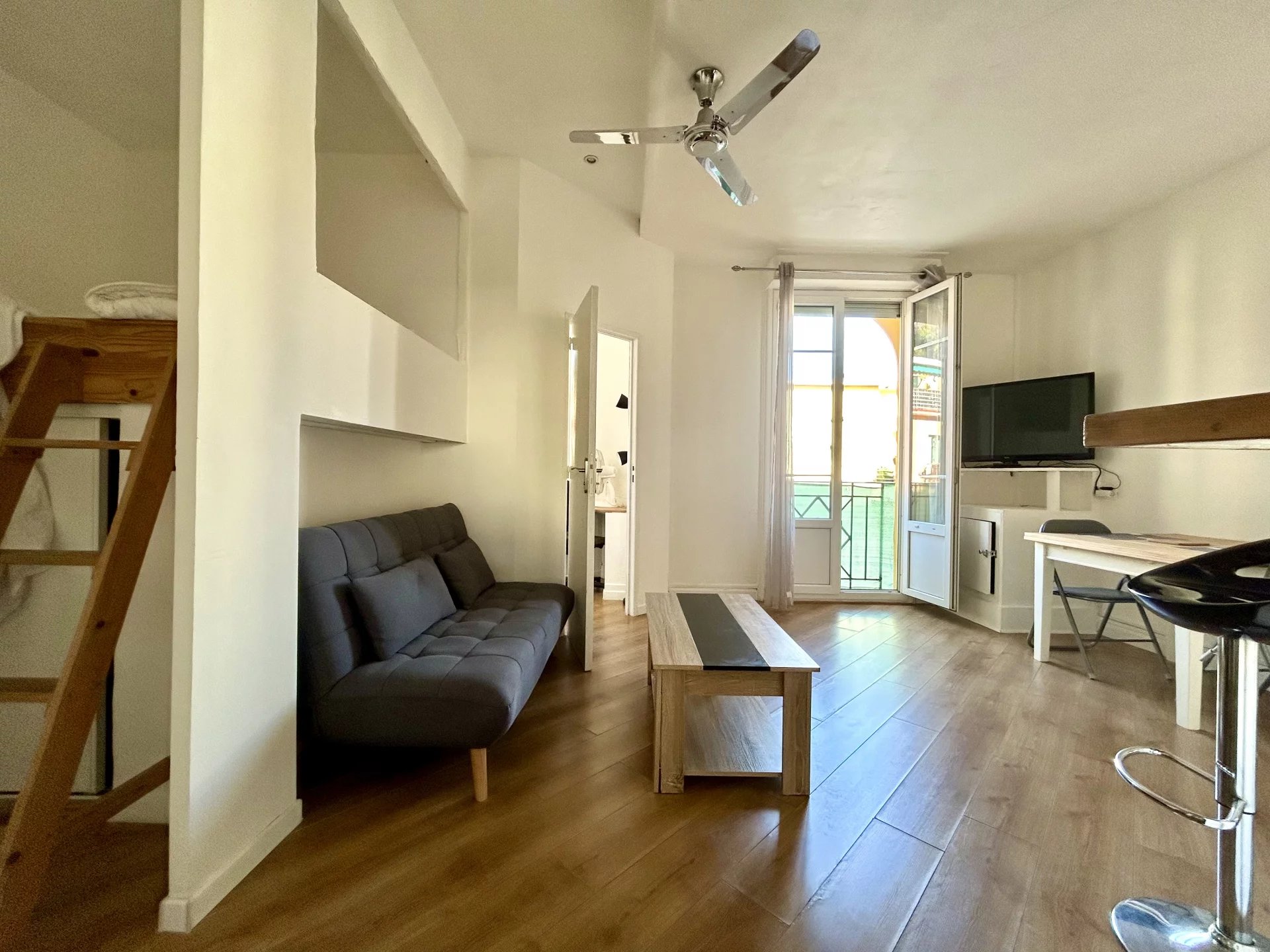 L’appartement se compose d’un séjour avec cuisine ouverte, d’un coin nuit distinct, d’une chambre indépendante, d’une salle de douche, de WC séparés et de rangements intégrés.
