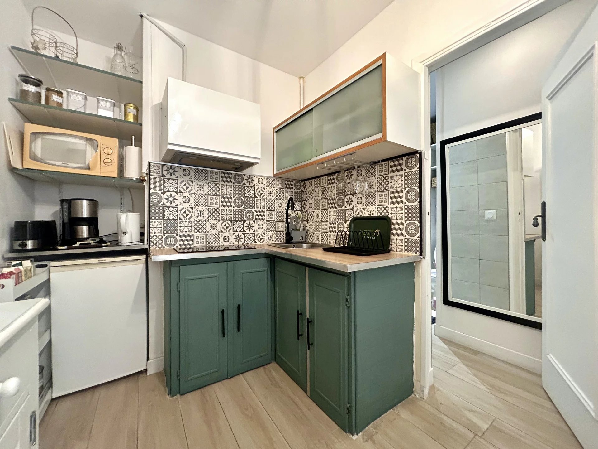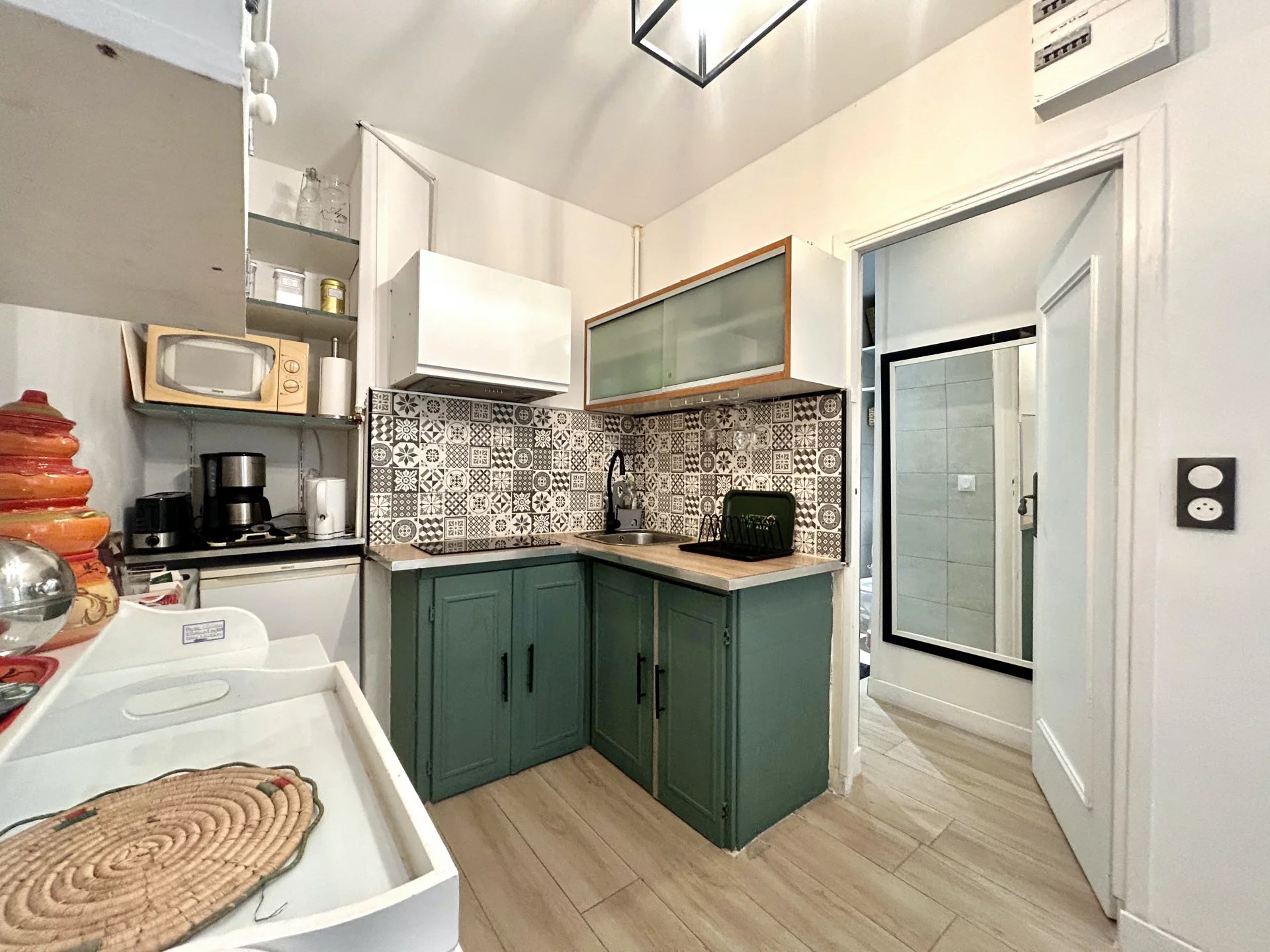 Ce grand F1 se compose d’une entrée, d’un séjour avec coin cuisine ouvert donnant sur une cour intérieure privative, au calme. Il dispose également d’un coin nuit, ainsi que d’une salle de douche avec toilettes. L’agencement est optimisé et fonctionnel. Le bien est équipé de climatiseurs réversibles, du chauffage collectif, d’une double isolation, double vitrage et de stores électriques.