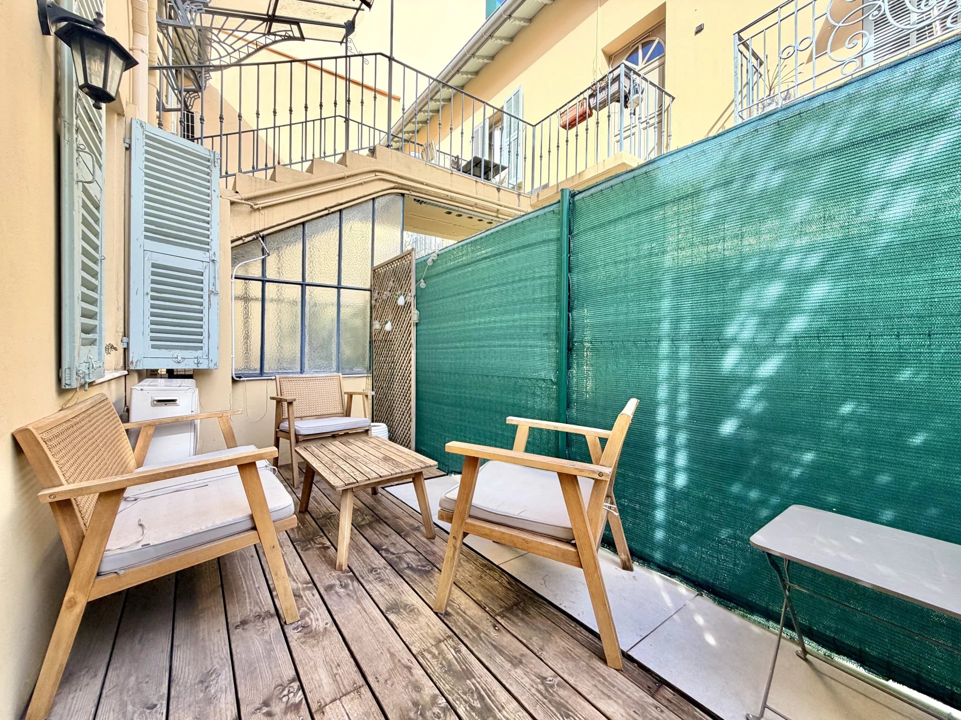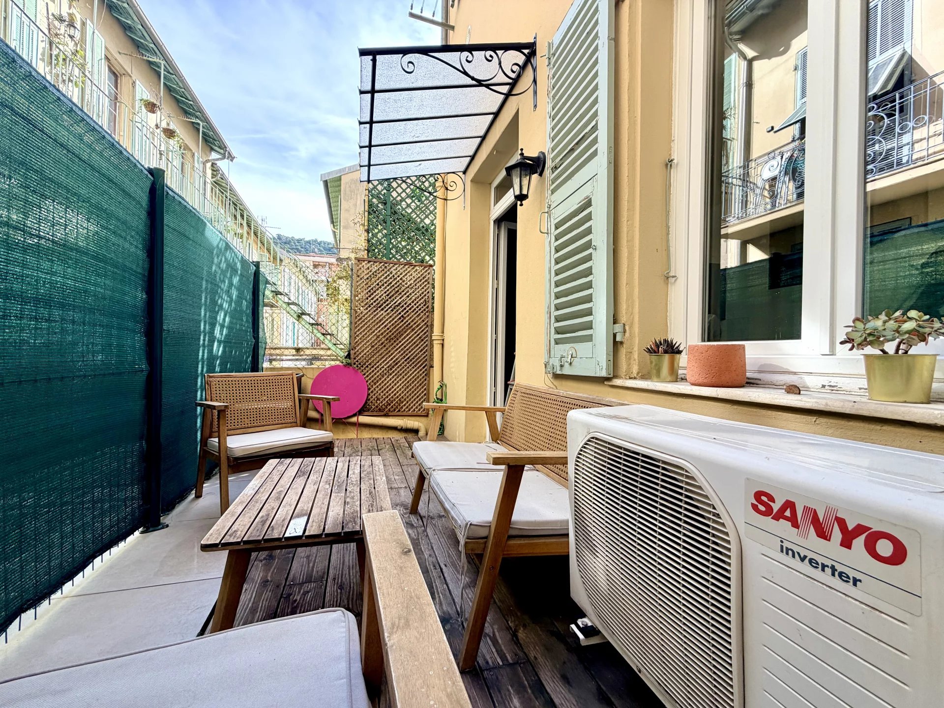 Atout rare dans le quartier : la pièce de vie s’ouvre sur une belle terrasse de 9 m², parfaitement exposée, idéale pour profiter du climat niçois toute l’année.