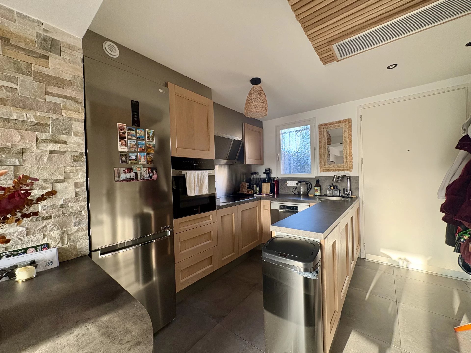 Au rez-de-chaussée, un séjour d’environ 30 m² baigné de lumière accueille une cuisine ouverte entièrement équipée de belle manufacture, créant un espace de vie convivial et fonctionnel. L’ensemble s’ouvre sur une agréable terrasse exposée Ouest, idéale pour profiter des fins de journée au calme.