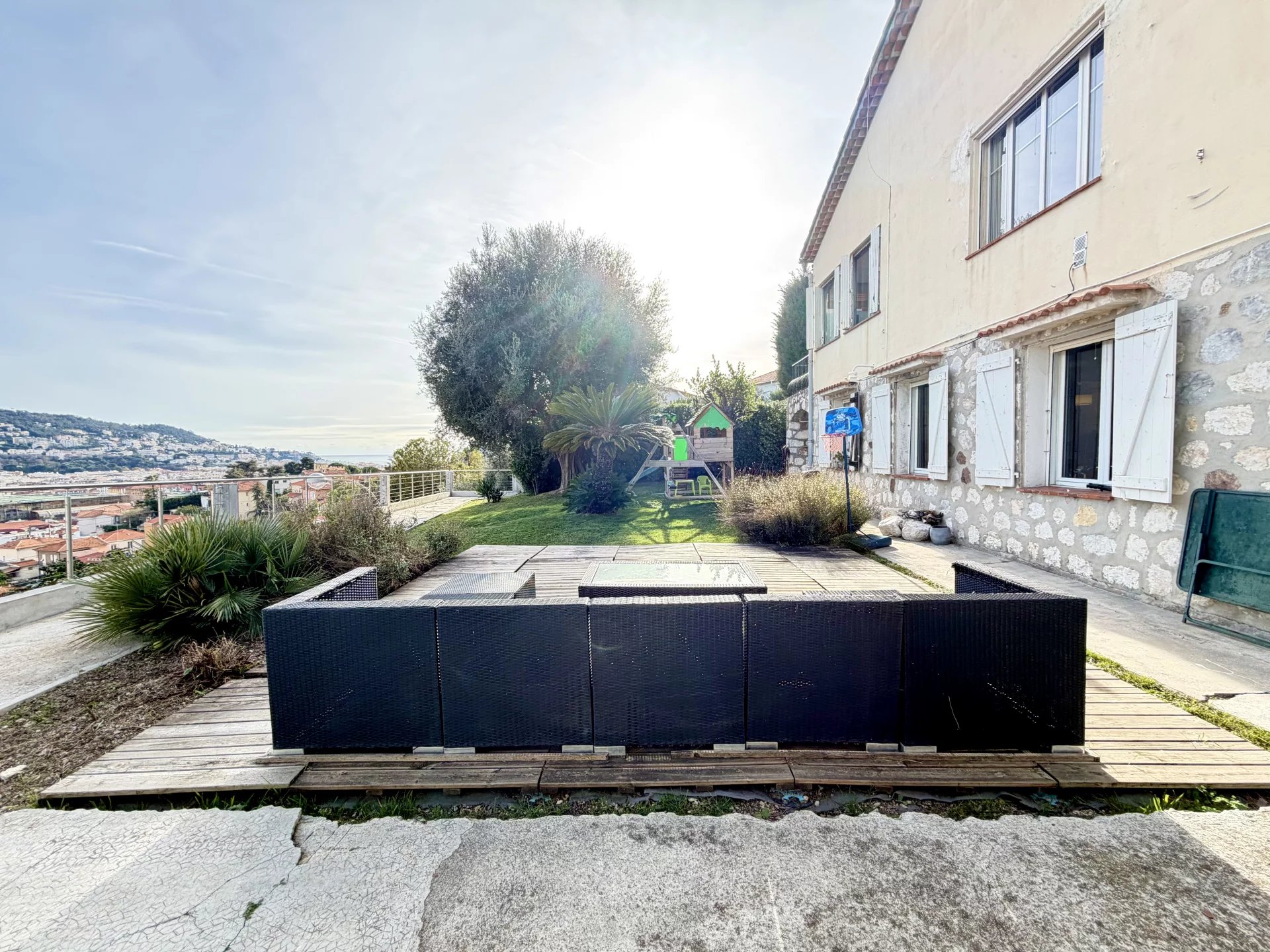 Cette propriété rare réunit des critères devenus difficiles à trouver à Nice. Quartier prisé, vue dominante, calme, terrain plat, potentiel d’évolution et habitation immédiate possible. Des projets de promoteurs ont déjà été étudiés, soulignant la valeur et l’attractivité du bien.