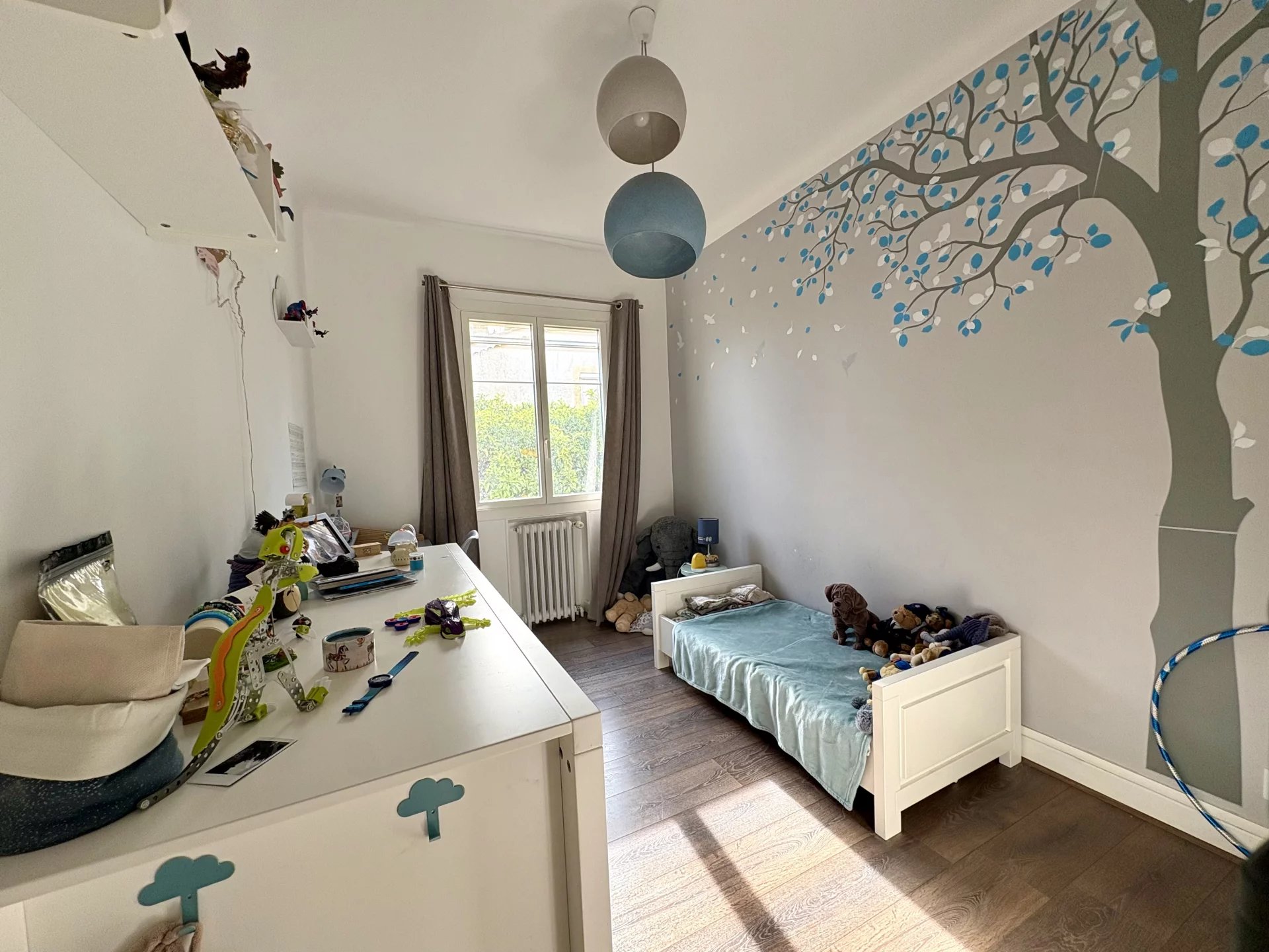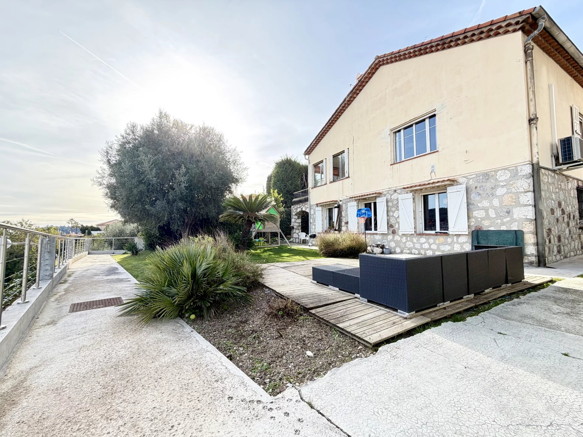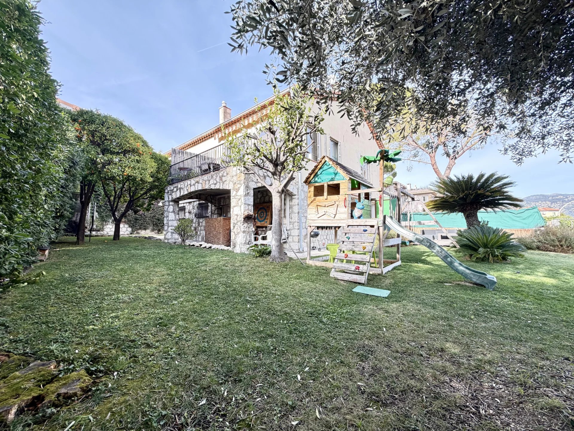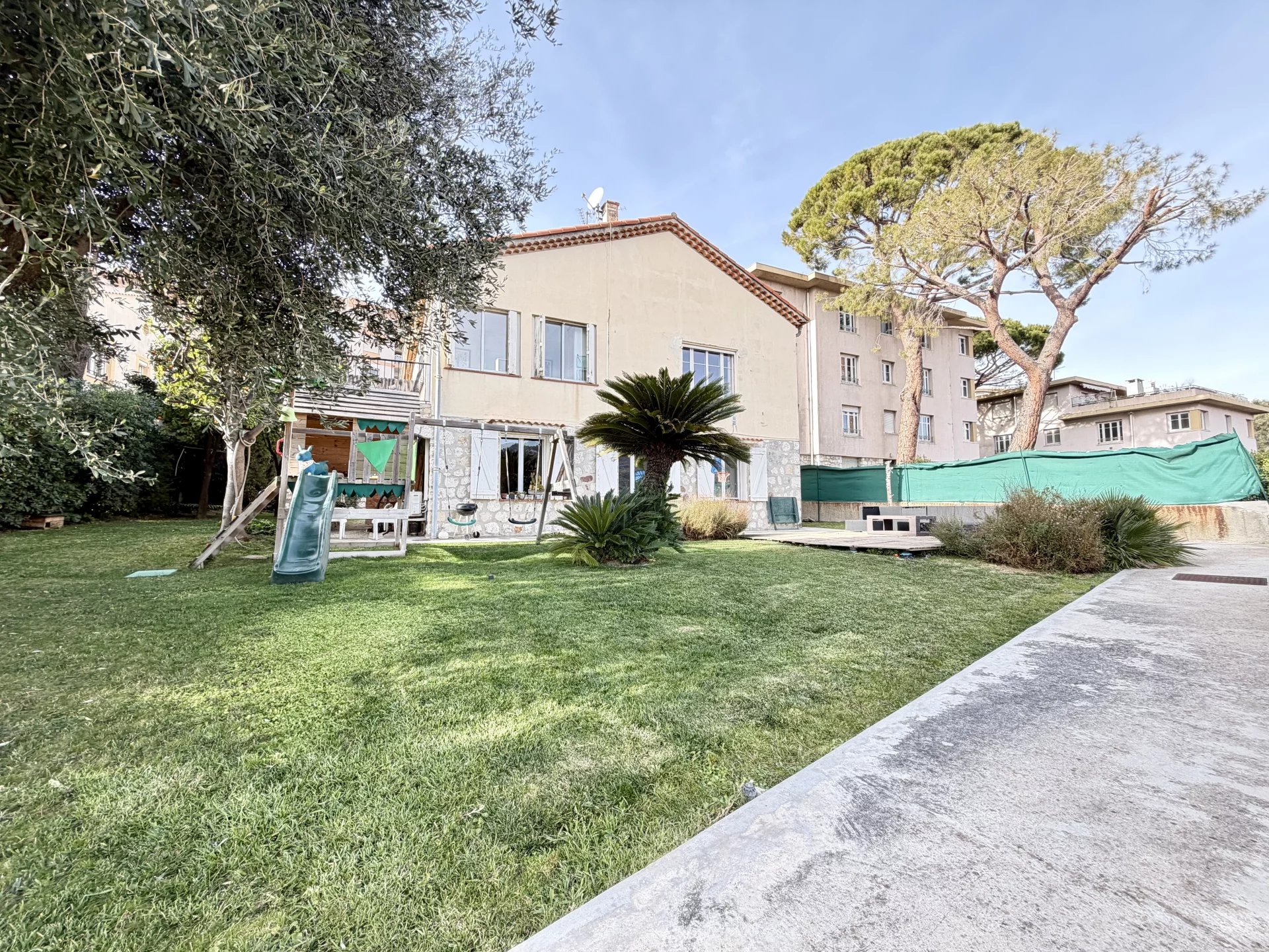 Le jardin, parfaitement plat et ensoleillé, constitue un véritable atout. Arboré et agrémenté d’un magnifique olivier centenaire, il offre un environnement idéal pour la vie de famille et permet l’implantation d’une piscine. Plusieurs stationnements privatifs sont possibles à l’intérieur de la propriété grâce à un accès par rampe.